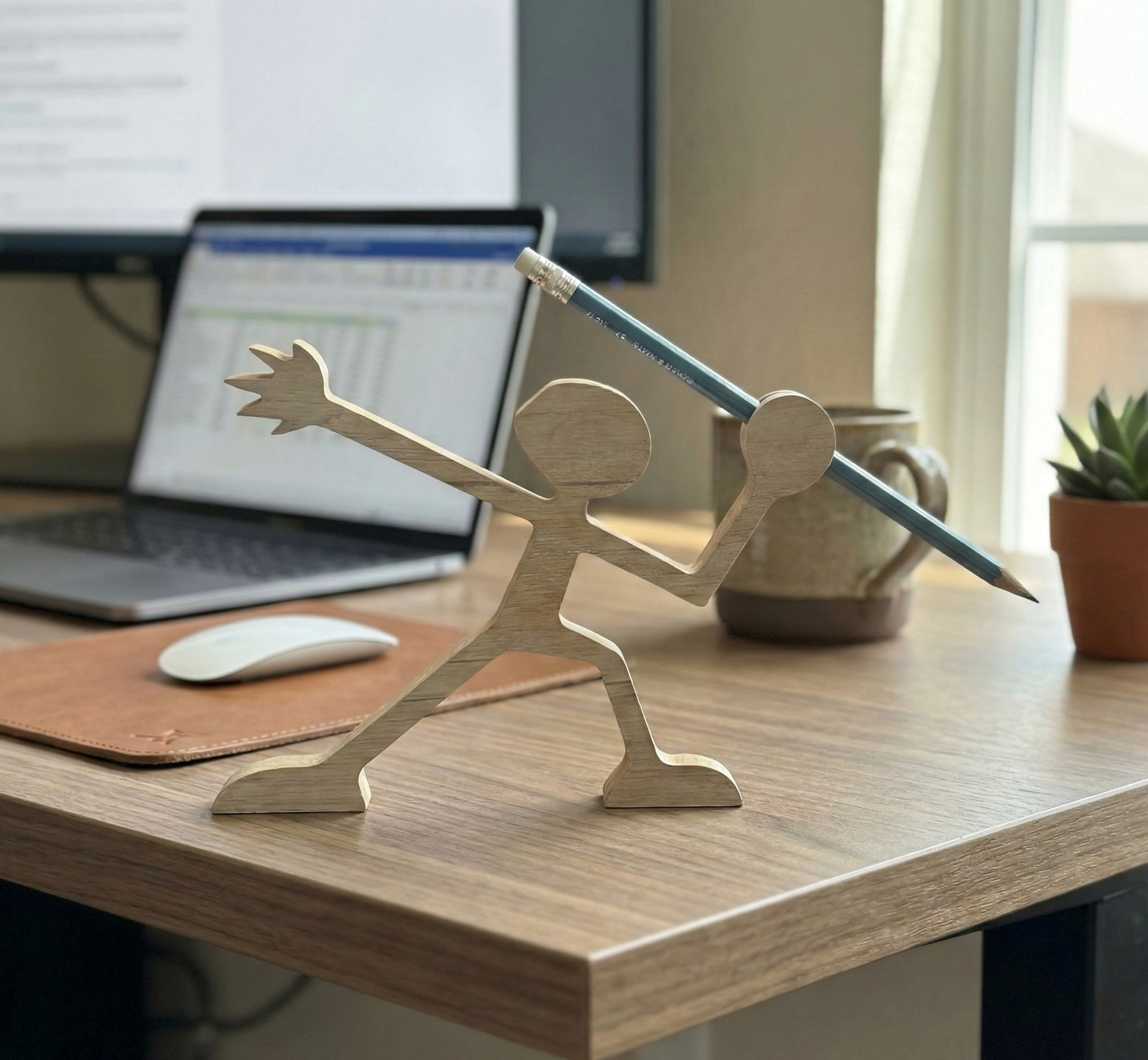 Dale un toque creativo y original a tu escritorio con nuestro porta lápiz en forma de lanzador. Fabricado en madera de alta calidad, este accesorio combina funcionalidad y diseño decorativo, ideal para oficinas, escritorios de estudio o como un regalo único.