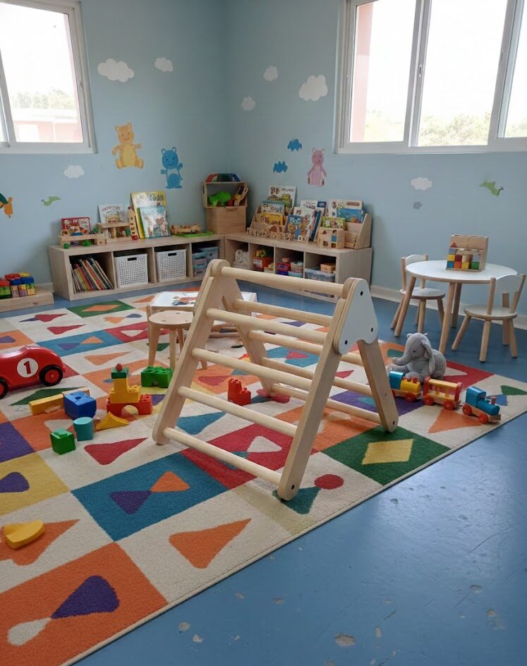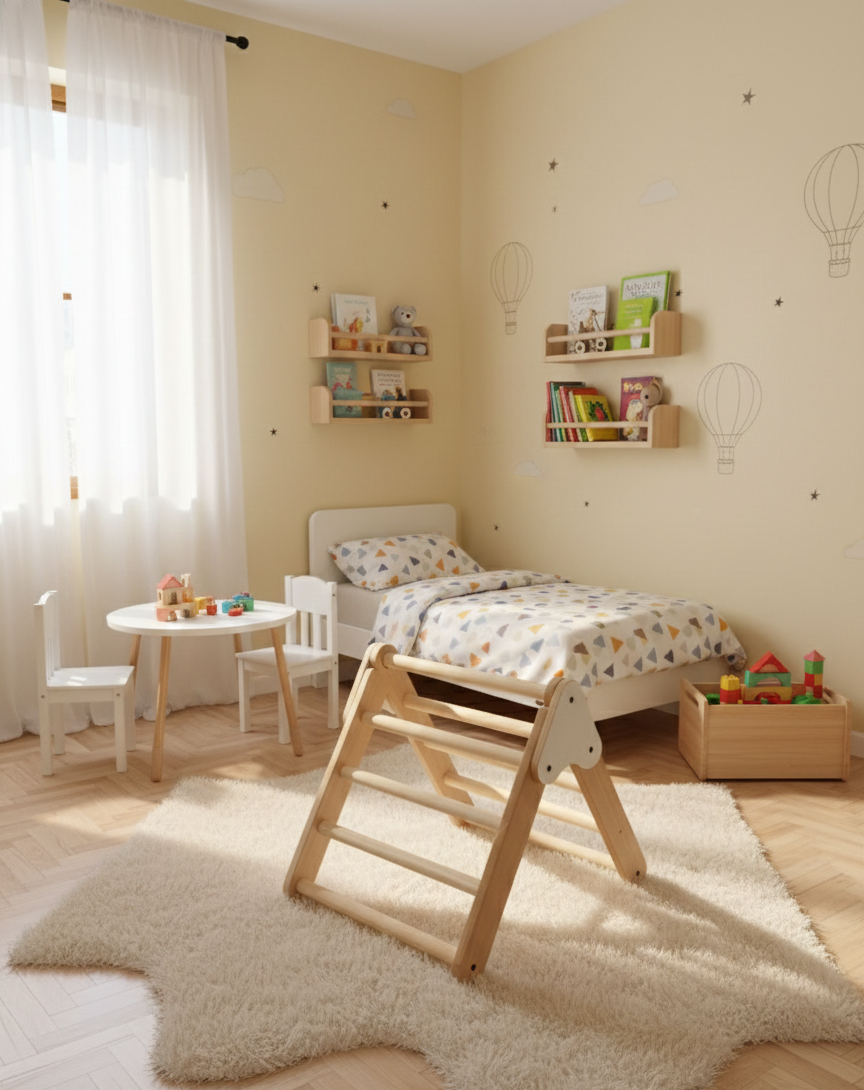 El Triángulo Montessori es un juego de estimulación ideal para acompañar el desarrollo motriz y la autonomía de los más pequeños. Diseñado para fomentar el movimiento libre, la coordinación y la confianza, permite que el niño explore, trepe y fortalezca su equilibrio de manera segura.